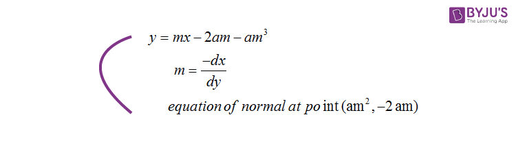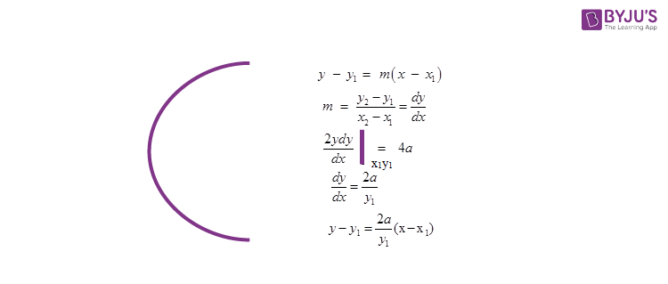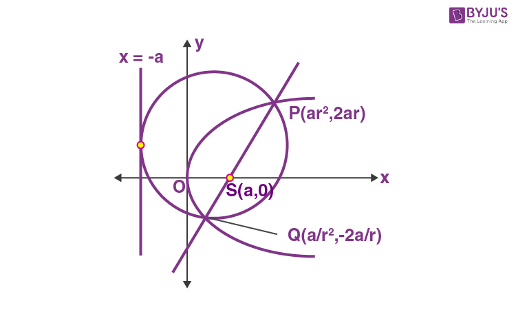 For a parabola, the equation is y2 = -4ax. Now, to represent the co-ordinates of a point on the parabola, the easiest form will be = at2 and y = 2at as for any value of “t”, the coordinates (at2, 2at) will always satisfy the parabola equation i.e. y2 = 4ax. So,